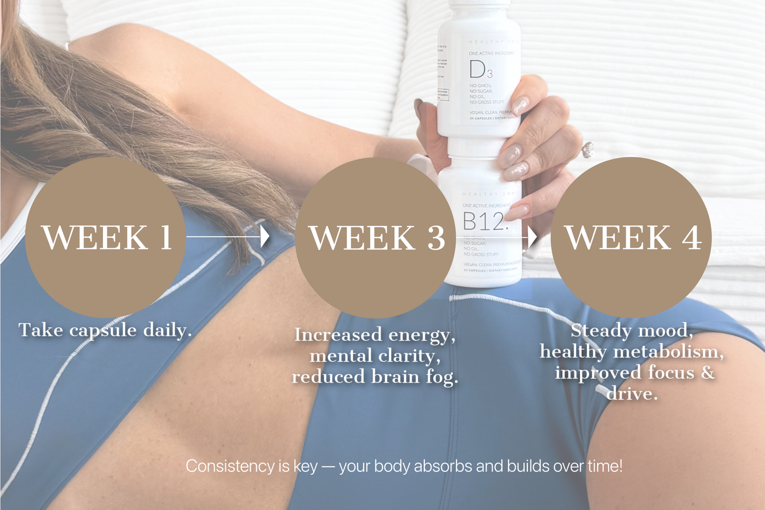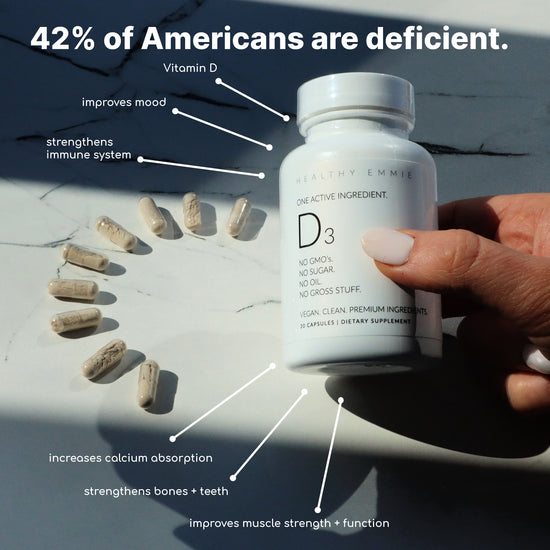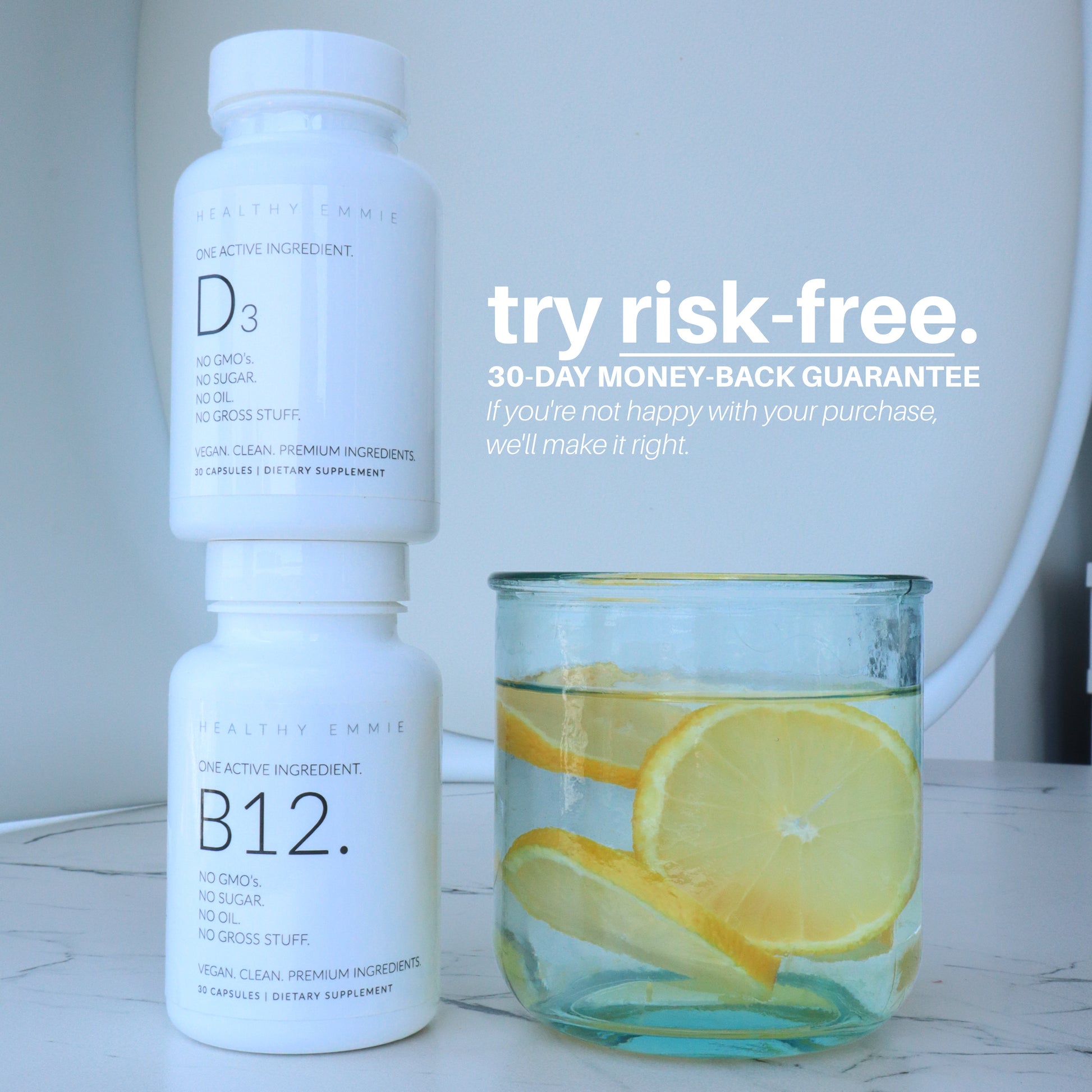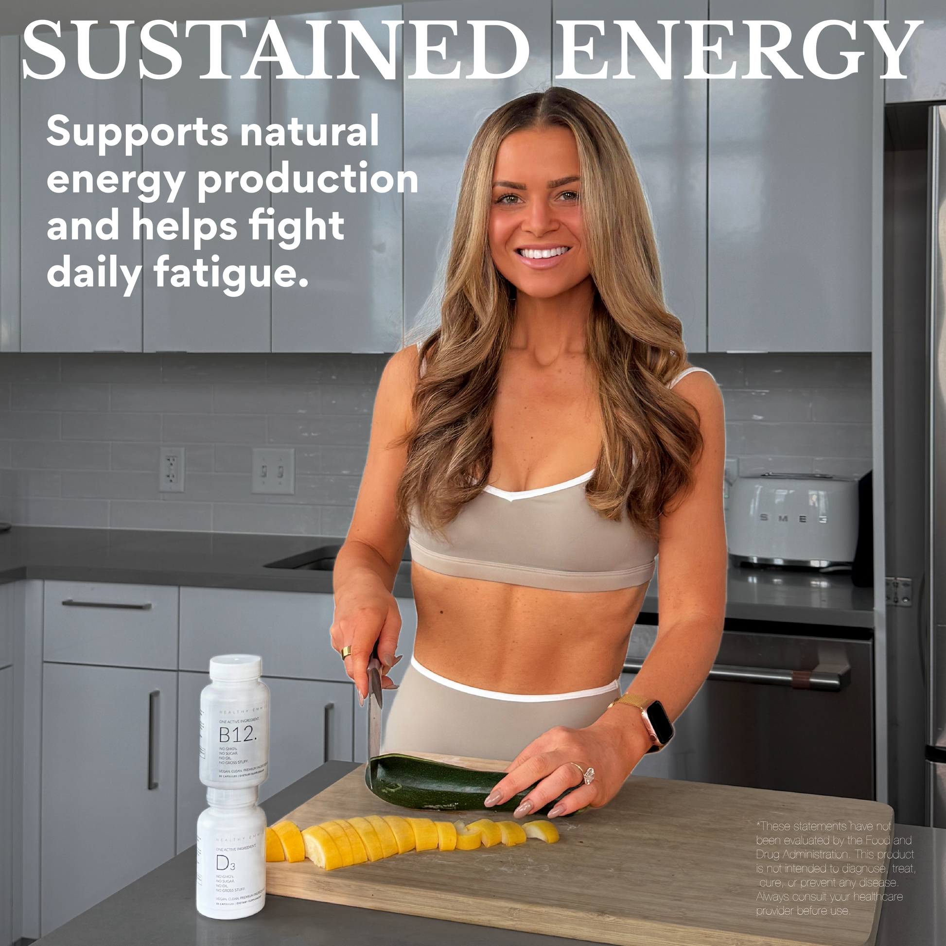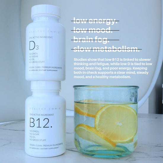 Vegan B12 + D3 for energy, mood, and immunity. Created by Healthy Emmie, trusted by millions of followers worldwide.